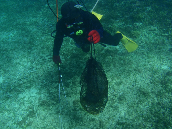 伊江島の漁師が一所懸命にインストラクターを務めます。